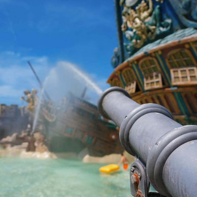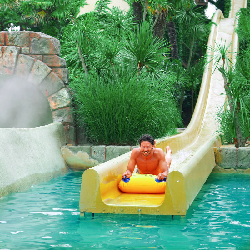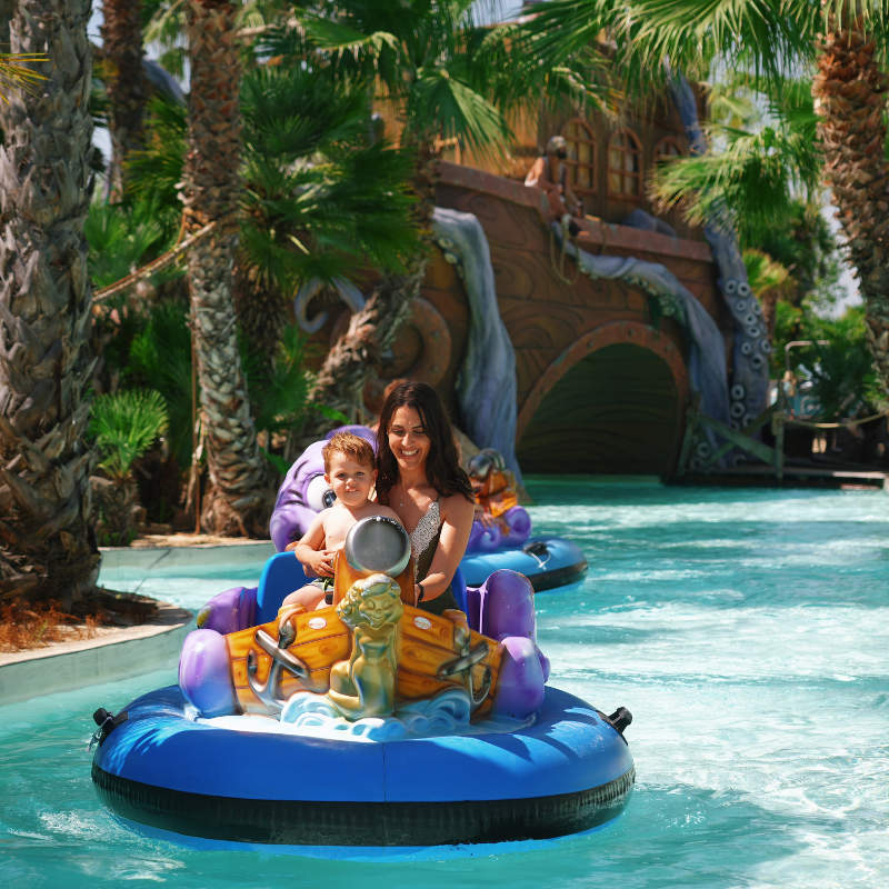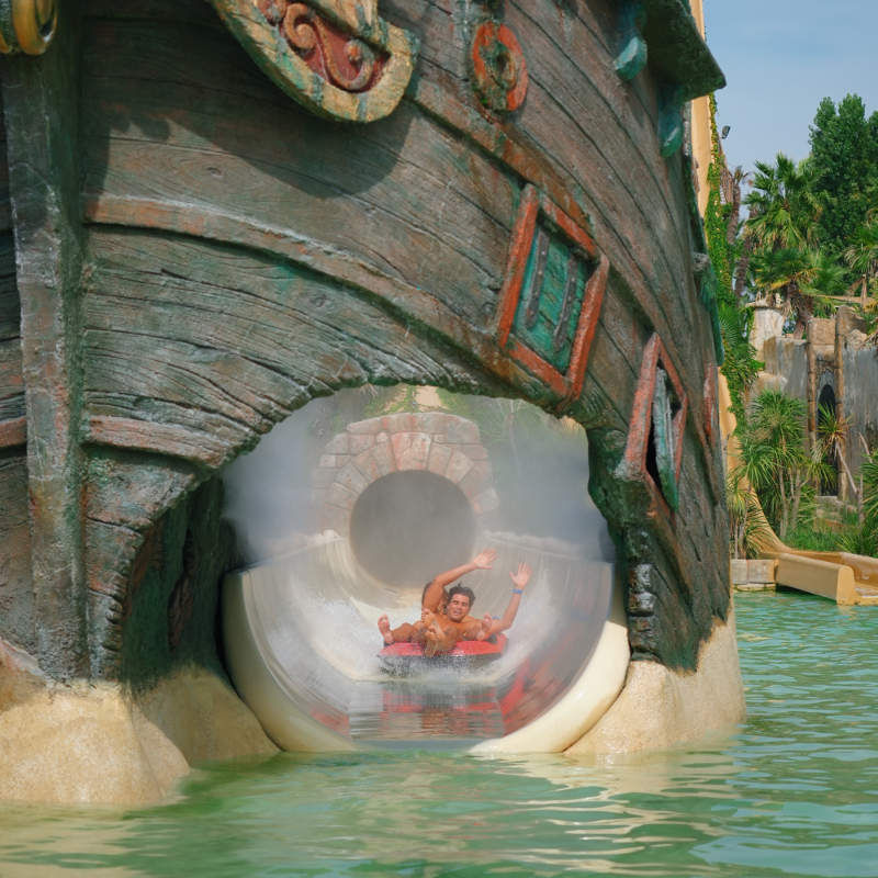 Pirates’ BayA white, sandy bay for little pirates seeking adventure! Water games, exciting slides and lots more attractions in the middle of the jungle for maximum entertainment in total safety. And for parents, total Caribbean relaxation under the sun umbrellas surrounded by palm trees