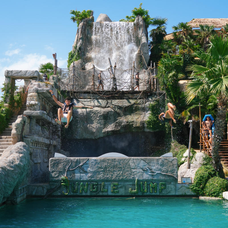 Silver CapeSilver Cape is the new elevated area of Caribe Bay with stunning views of the Jungle Jump waterfall. Close to the slides and Shark Bay, it offers gazebos, dining spots, and a chiringuito for cocktails and tasty dishes. With music and a tropical setting, it’s ideal for dancing, relaxing, and enjoying breathtaking scenery. Perfect for a summer break with fun and comfort.